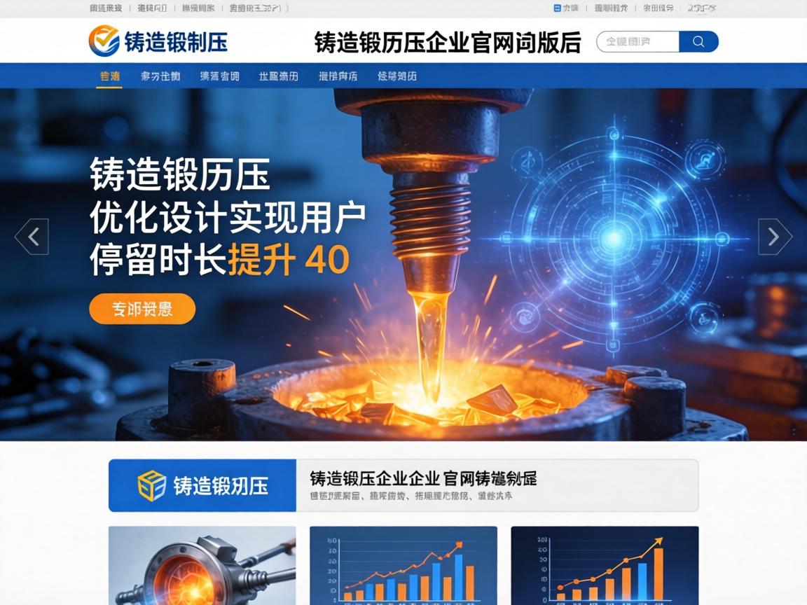 在铸造锻压行业里的用户,常常在带有清晰采购任务的情况下,去访问官网,他们对于页面最初的印象,是极其敏感的。选用深蓝、银灰这样象征工业精密度的主要色彩,再搭配高清的设备实际拍摄图片以及生产场景的视频,能够在10秒之内,建立起专业认知。