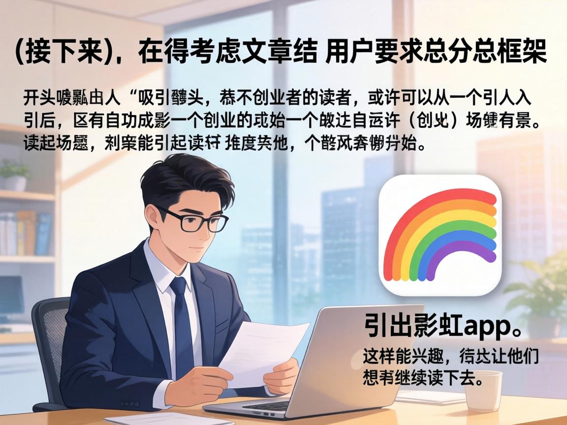 ,用户接下来讨论了文章的结构,要求总分总框架,开头要有噱头,吸引读者,他建议从创业者的成功故事开始,然后引出彩虹app,这样能引起读者的兴趣,让他们想继续阅读下去。,我需要先理解用户的需求,他可能是在写一篇关于创业或科技应用的文章,希望通过吸引人的开头来抓住读者的注意力,彩虹app可能是一个关键产品,用户希望突出其在创业中的作用。,我要考虑如何将这些元素整合到摘要中,开头可以用一个引人入胜的场景,比如创业者的成功故事,然后介绍彩虹app的作用,中间部分需要说明app的功能和优势,比如高效管理、资源整合等,总结app对创业者的帮助,强调其重要性。,在语言上,要保持简洁有力,同时吸引读者,可能需要使用一些激励性的词汇,让读者感受到使用彩虹app带来的积极影响。,我需要将这些思考转化为一段流畅的摘要,确保在100-200字之间,结构清晰,有吸引力,要突出彩虹app的关键作用,让读者明白它如何帮助创业者取得成功。,,在一个充满机遇与挑战的时代,创业者的成功故事总是让人热血沸腾,而在这背后,一款名为“彩虹”的高效管理app,正在悄然改变着创业者的日常,它不仅帮助创业者高效管理时间,还能精准整合资源,让创业之路更加顺畅,通过彩虹app,创业者可以轻松实现团队协作、项目跟踪和数据分析,从而在竞争激烈的市场中占据先机,无论是初创公司还是成熟企业,彩虹app都成为了不可或缺的得力助手,为创业者的成功之路保驾护航。